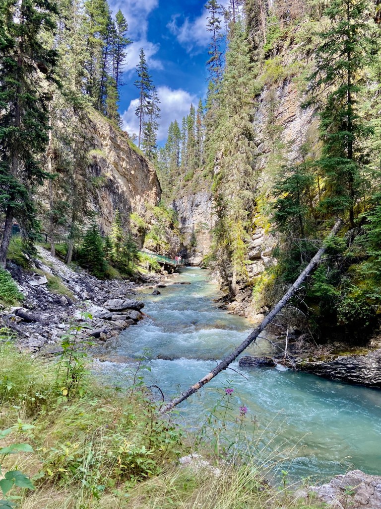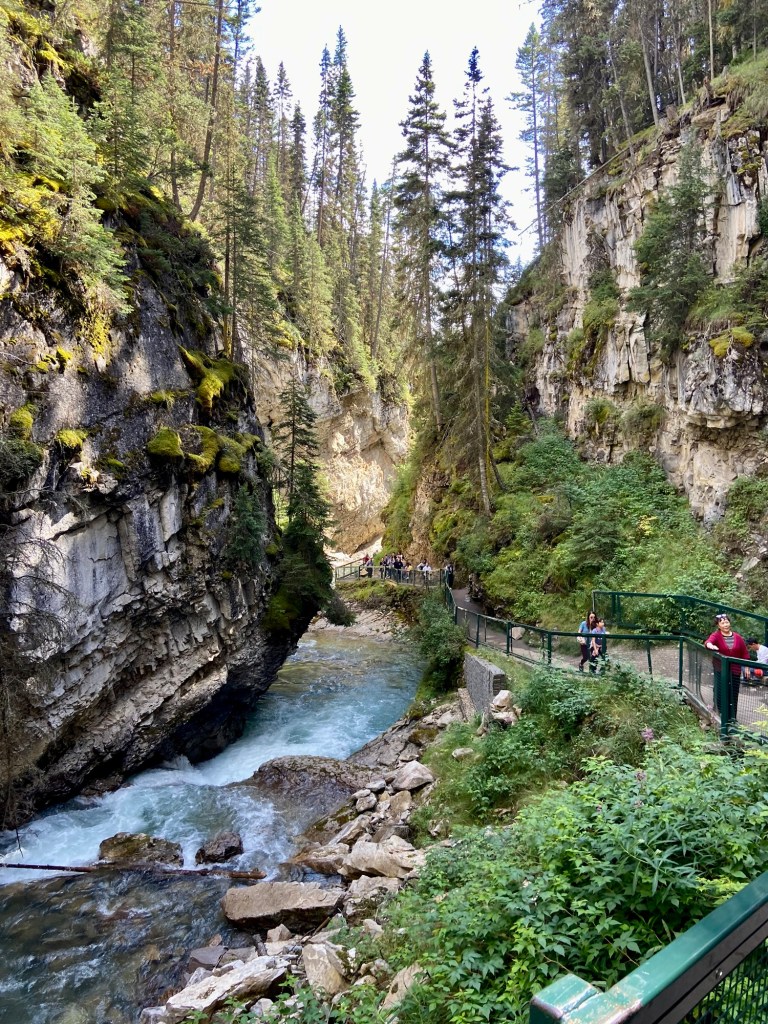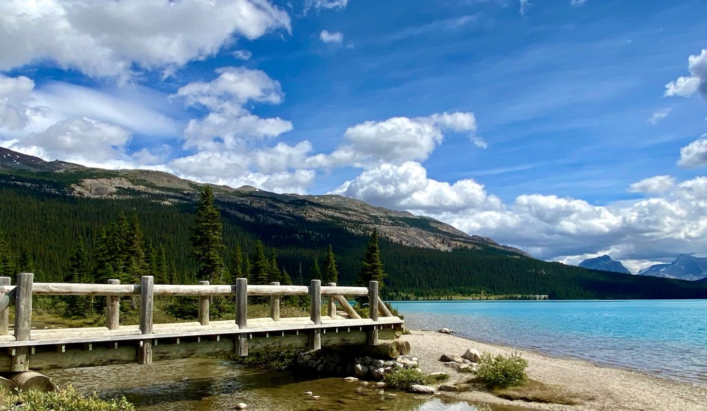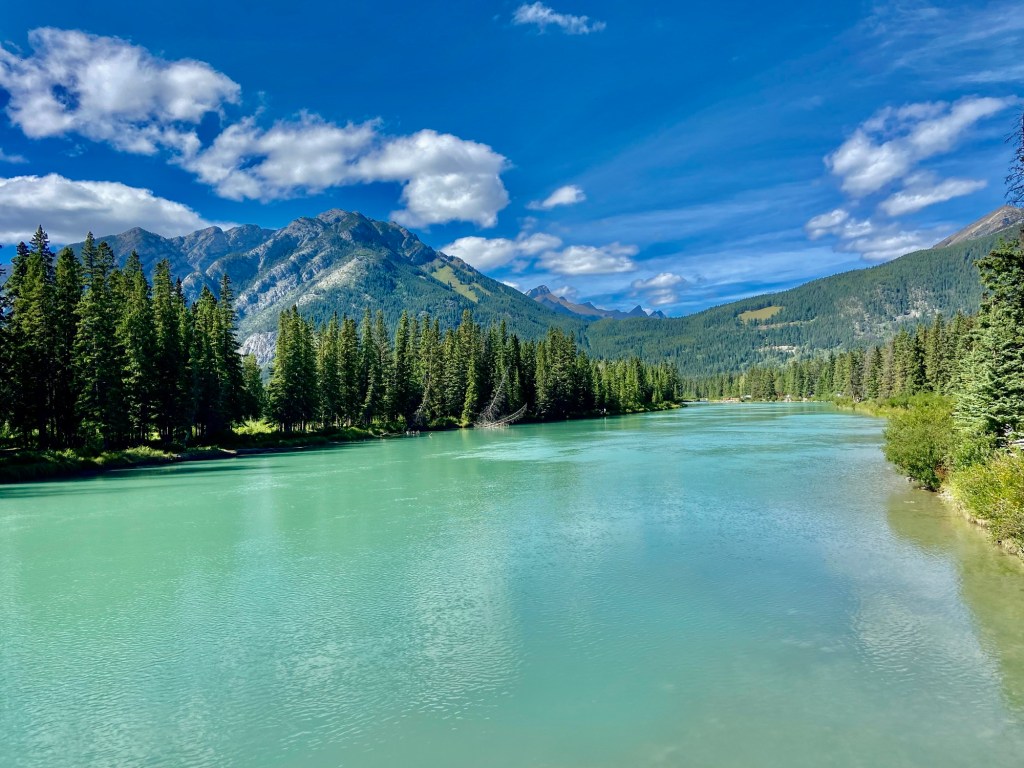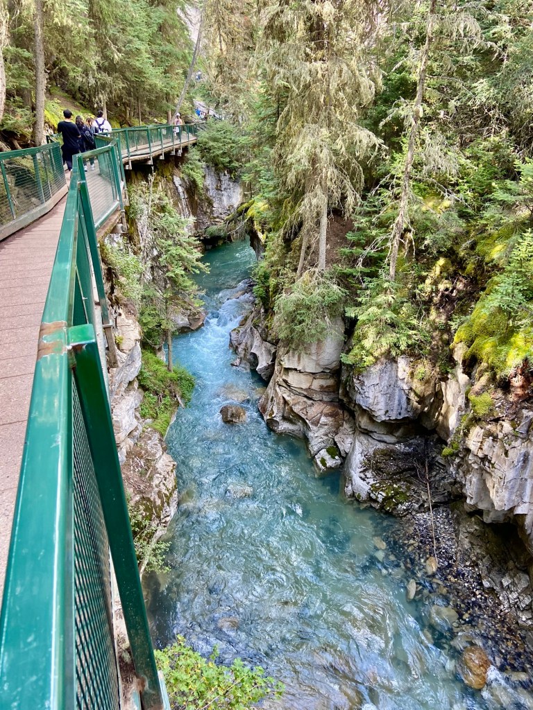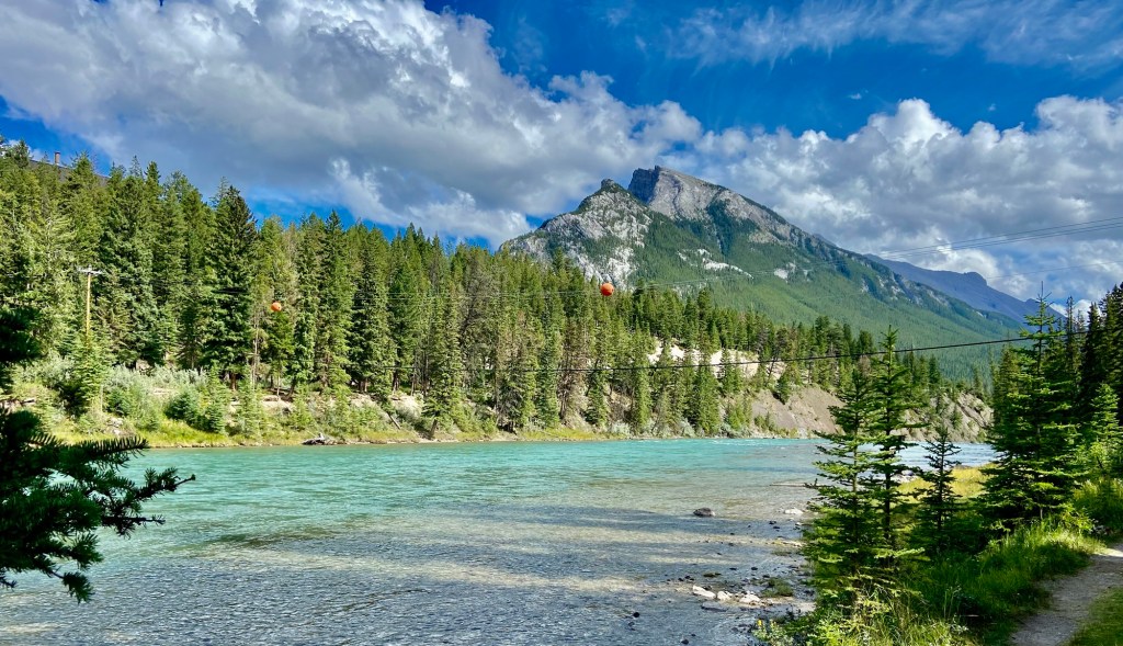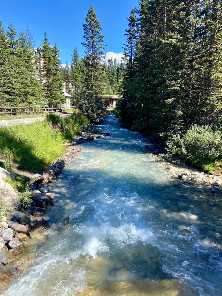 Most of the action in Banff town is east of the Bow River, but there are three bridges that cross over to the western side, two of which are pedestrian bridges. On the west side, be sure to walk the path along the Bow River near the Banff Pedestrian bridge to enjoy the nature and the sounds of the rushing water. Other highlights of Banff town were the Cascade of Time Gardens, the Cave and Basin National Historic Site (and Canada’s first national park), walking along Banff Avenue for shopping, and stopping at an occasional rooftop bar, and the ever-impressive Fairmont Banff Springs hotel, which looks like an imposing castle in the wilderness (also an excellent place for a fancy cocktail). For dinner, I highly recommend Lupo. We liked it so much we ate there twice during our weeklong stay.