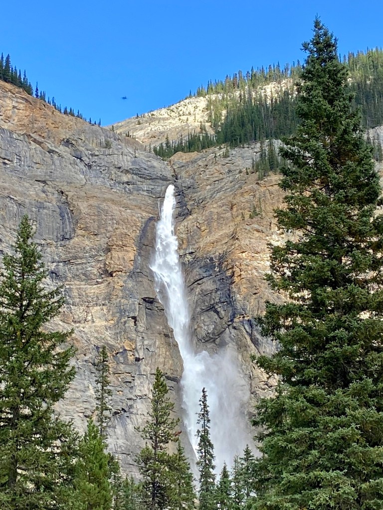 Bordering Banff is the Yoho National Park, which gets rave reviews. A ranger tipped us off to Takakkaw Falls, which is one of the highest waterfalls in Canada. The drive there was twisty, with some very sharp switchbacks (RVs and trailers are prohibited), but it was all part of the adventure. The falls were awesome, and when we walked 5 minutes from the viewpoint, we found ourselves in a wide-open wetland with shallow streams flowing through it, and a massive glacier in the background. The falls are closed October to June, so plan accordingly.